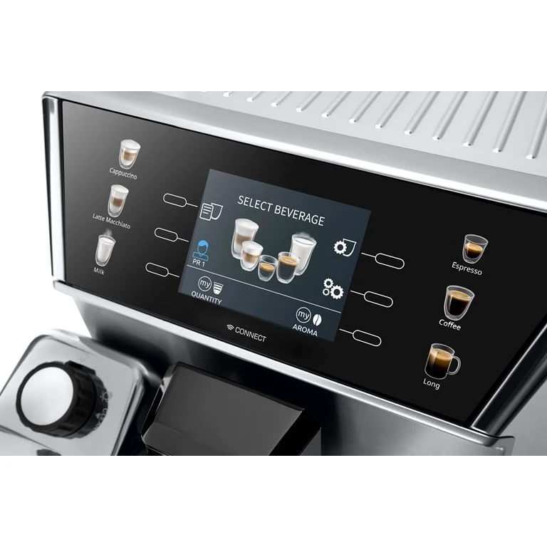 Maskinen har mulighed for Avanceret personlig tilpasning med “My” funktionen og op til 3 brugerprofiler. Den har en touch skærm med 6 forskellige touch knapper, til at vælge hvilken kaffe man vil starte dagen på. Udover espresso, kan maskinen også lave cafe latte og andre kaffeklassikere. Kværnniveauet kan justeres, og dampsystemet sikre kaffen får den optimale temperatur. Den har perfekt automatisk mælkeskum takket være LatteCrema Hot Technology, som er udstyret med et automatisk rengøringssystem.