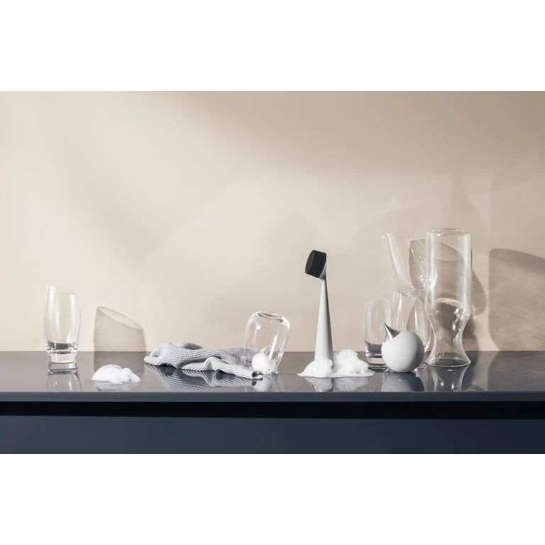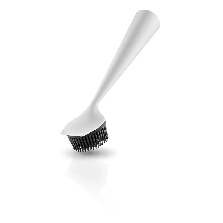 Grå opvaskebørste fra Eva solo. Børsten har et enkelt og minimalistisk design, med praktisk kant, som hjælper med at skrabe snavs væk, og sikre en høj køkkenhygiejne. Børstehovedet er udstyret med et slidstrækt børstehoved med silikonehår, der tørrer hurtigt.