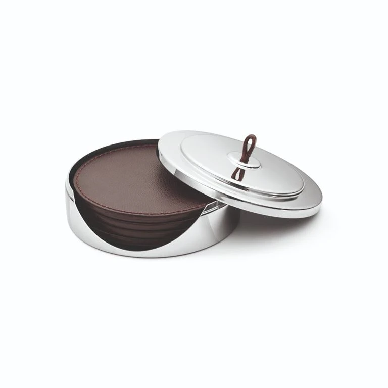 Georg Jensen Manhattan 4-Pak Glasbrik, Stål/Læder, Ø12 Cm