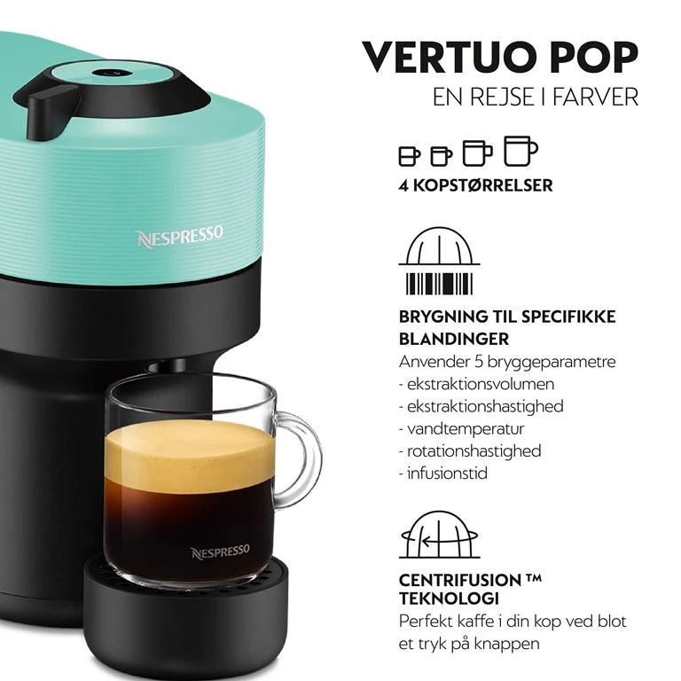 Tilbuddet gælder udelukkende ved køb af Nespresso Vertuo POP-kaffemaskiner købt i Danmark hos en Nespresso