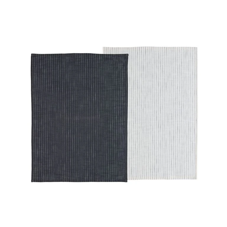 Södahl 2-Pak Line Viskestykke, Ask/Hvid, 50×70 Cm